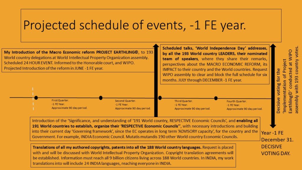 - An absolutely UNBIASED, MACRO GUIDANCE will be provided to all the World countries, ensuring all the World countries, achieve their respective economic objectives, achieve self sustained, and fully independent economy with no dependence on any foreign country eventually, or with least dependence, citing distinction with well thought out cross country business or trade, with economic prudence. This is by way of the cascading effects of my work, series of Macro initiatives, Macro reforms by way of initiatives of Earthling Foundation Public charitable Trust, Earthling Foundation Private Trust, Indian Economic council, IEC Economic reforms and policies, implemented in combination for achieving ‘Goal Year 30 FE for INDIA’. The cascading effects, and replicating effects will be authored to become the ‘Macro Guidance’ for all the 188 World countries, certainly for the ones that want to emulate, guidance provided by New World Order councils. The qualifying countries will receive an economic package in EARTHLINGS currency, as early as year 6 FE.
